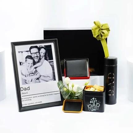 1 Mens Wallet 1 Photo Frame(8x10Inch) Smart Insulated Water Bottle 1 white lisianthus 1 Tin Chocolates Arranged Beautifully in a