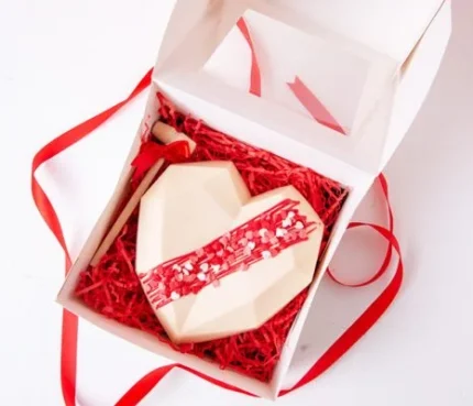 YOUR GIFT CONTAINS Chocolate diamond heart made with approx. 500gms White and colored chocolate Heart Dimension: 20x17x6cm Box dimensions: LxBxH: