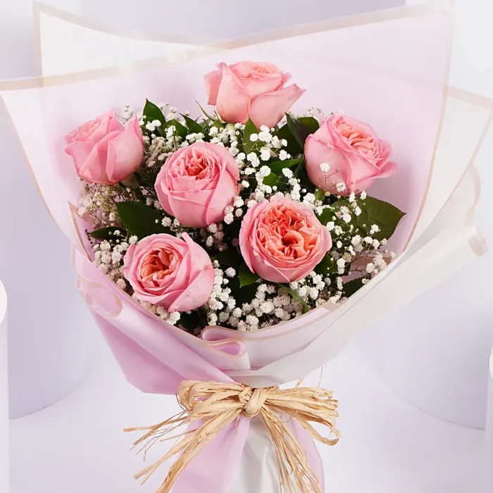 3 Orange Rose Flower 3 Peach Rose Magic Avalanche Flower 2 White Gypsophillia Filler Chocolate