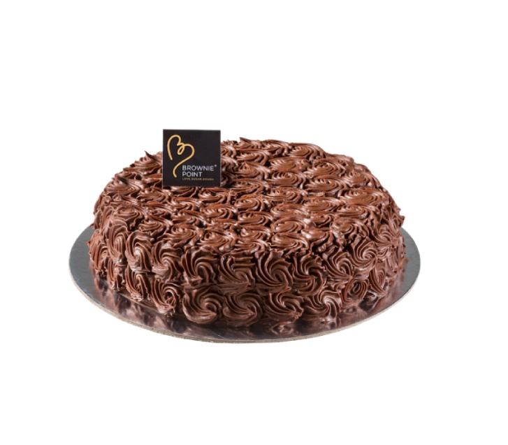 A sinful chocolate cake with Belgian chocolate and crunchy butterscotch, garnished with Belgian chocolate swirls.