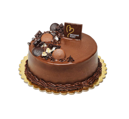 A sinful chocolate cake with Belgian chocolate and crunchy butterscotch, garnished with Belgian chocolate swirls.