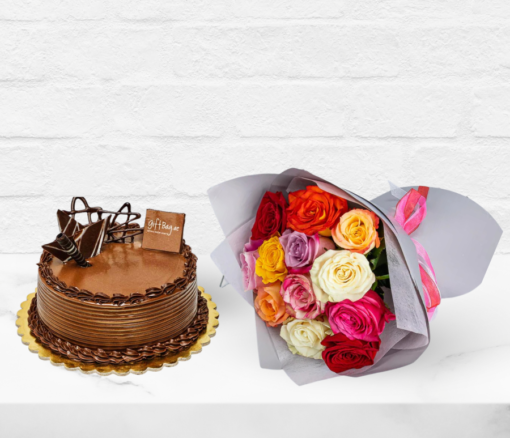 Dozen Multi Roses With Cake