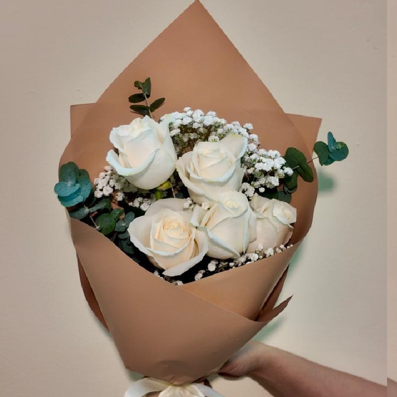 15 Red Rose 20 Ruscus Beautifully Wrapped with butter pape