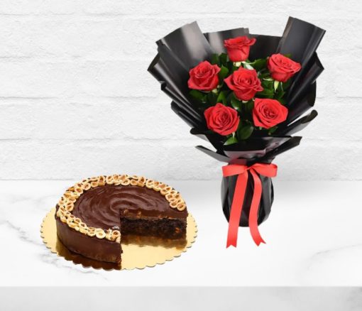 6 fresh red roses (Bouquet packaging may differ from the photo)