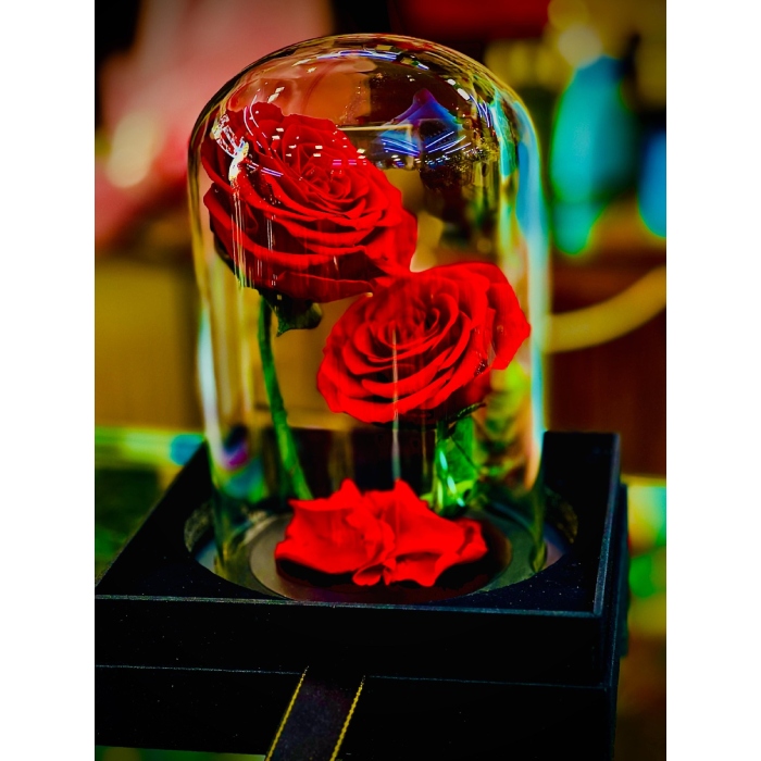 Large single red rose in vase box a beautiful and calm, but willing to draw blood in it’s defense