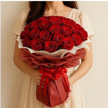 15 Red Rose 20 Ruscus Beautifully Wrapped with butter pape