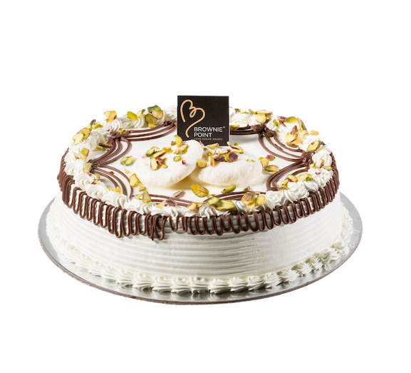 A juicy vanilla sponge soaked in thandai syrup and inter-layered with thandai flavoured fresh cream and pieces of rasmalai. Garnished with pistachios and rasmalai pieces