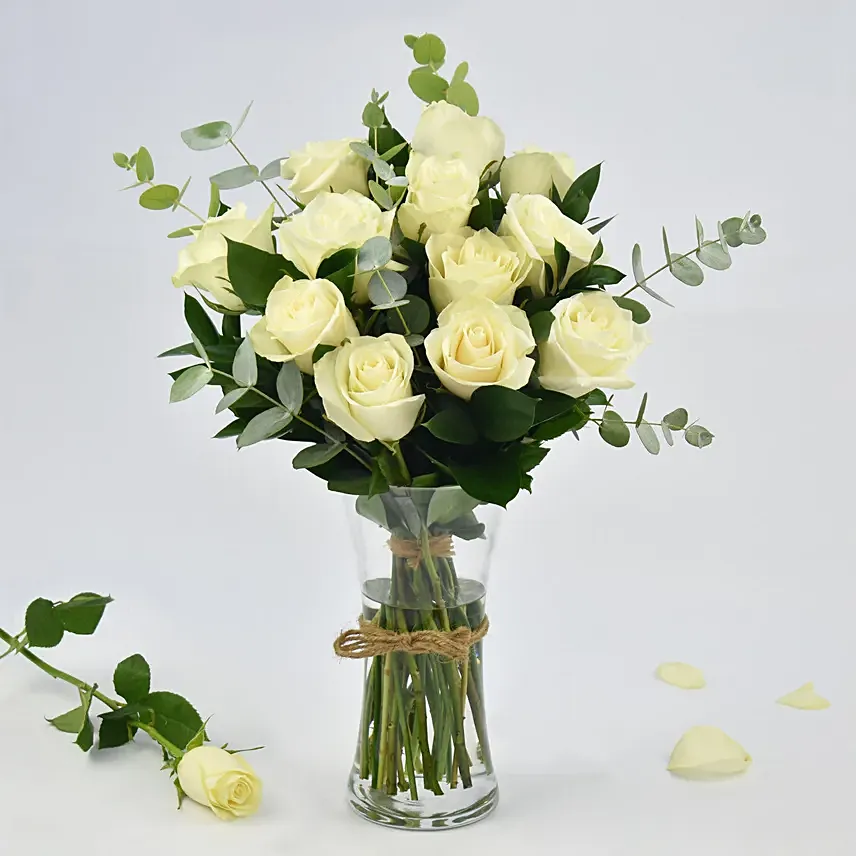 5 Cappucino Rose 10 Vandella White Rose 4 White Astilbe 2 Cinerea Eucalyptus 1 Brown Bori Beautifully Wrapped and tied