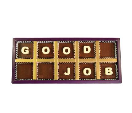 Your Gift Contains: – 10 Belgian Milk chocolate with GOOD JOB message – Flavors: Pistachio, Hazelnut and Salted Caramel –