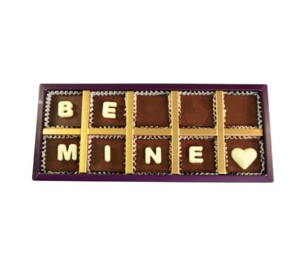 Your Gift Contains: – 10 Belgian Milk chocolate with Be Mine message – Flavors: Pistachio, Hazelnut and Salted Caramel –