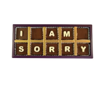 Your Gift Contains: – 10 Belgian Milk chocolate with I Am Sorry message – Flavors: Pistachio, Hazelnut and Salted Caramel