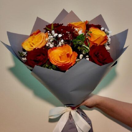 5 Ever Red Rose 5 Orange Rose 4pcs Gray Plastic Cream H40 W35 13 MIXED FLOWER BOUQUET