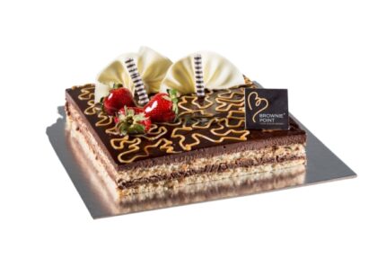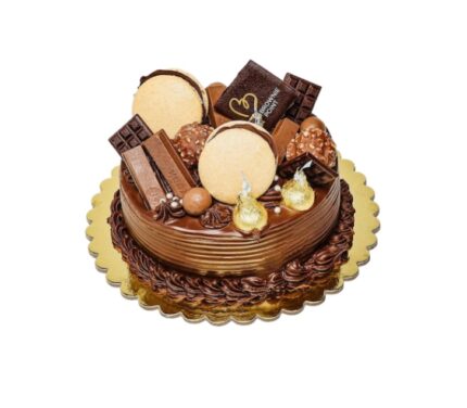 A true chocolate indulgence. An intense chocolate brownie cake with extra rich layers of chocolate ganace, butterscotch and roasted hazelnuts